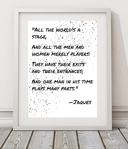 And one man in his time plays many parts his acts being seven ages. They have their exits and their entrances. All the worlds a stage and all the men and women merely players. At first the infant mewling and puking in the nurses arms.