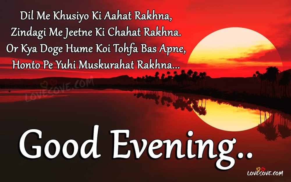 Sending good evening messages in hindi can never go out of fashion. Khubsyrat raat ka anand len bistar gale lagaane aur tension ko alavida kahane ke lie taiyaar hai. Le l. Labon pe muskan aankhon me khushi gum ka kahin kaam na ho har din laaye aapke liye itni khushiya jiske dhalne ki kabhi koi sham na ho.